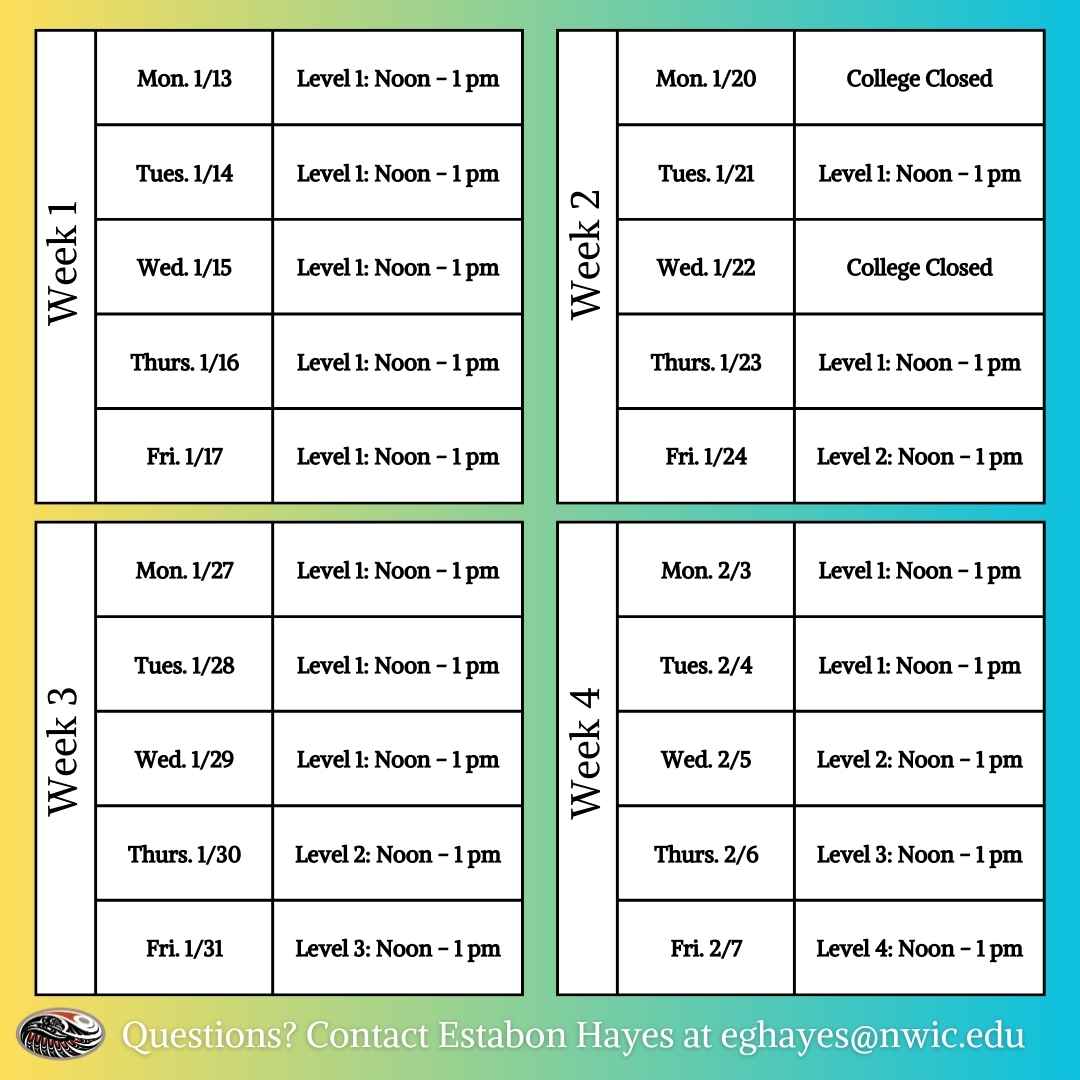 Join Financial Trainer Estabon Hayes in the Cooperative Extension for daily Financial Literacy Workshops noon to 1 pm. Lunch provided, pre-registration appreciated. To register or for questions, contact eghayes@nwic.edu